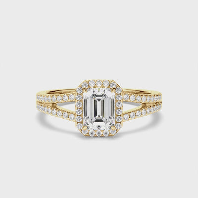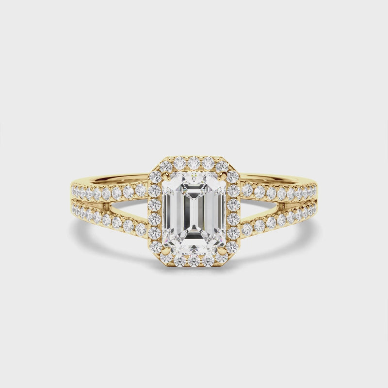 Emerald Cut Diamond Halo Engagement Ring with Pave Sides