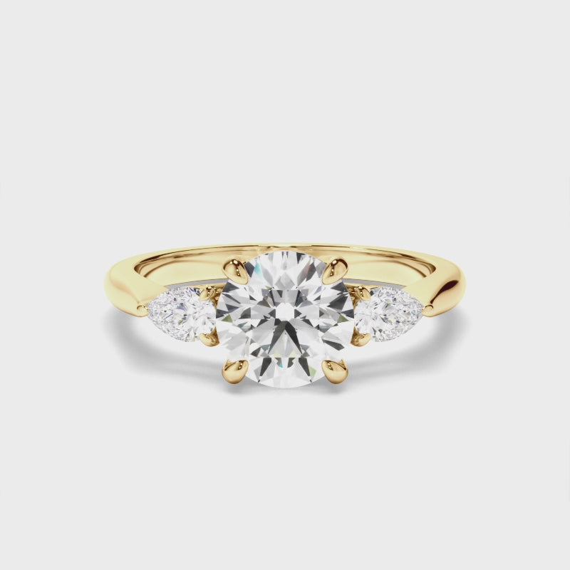 Round Brilliant Cut Diamond Trilogy Engagement Ring with Pear Sides